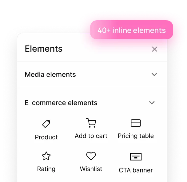 Add products, collections, and 40+ content blocks — from CTAs to social media embeds — and turn your blog posts into beautiful, shoppable experiences.