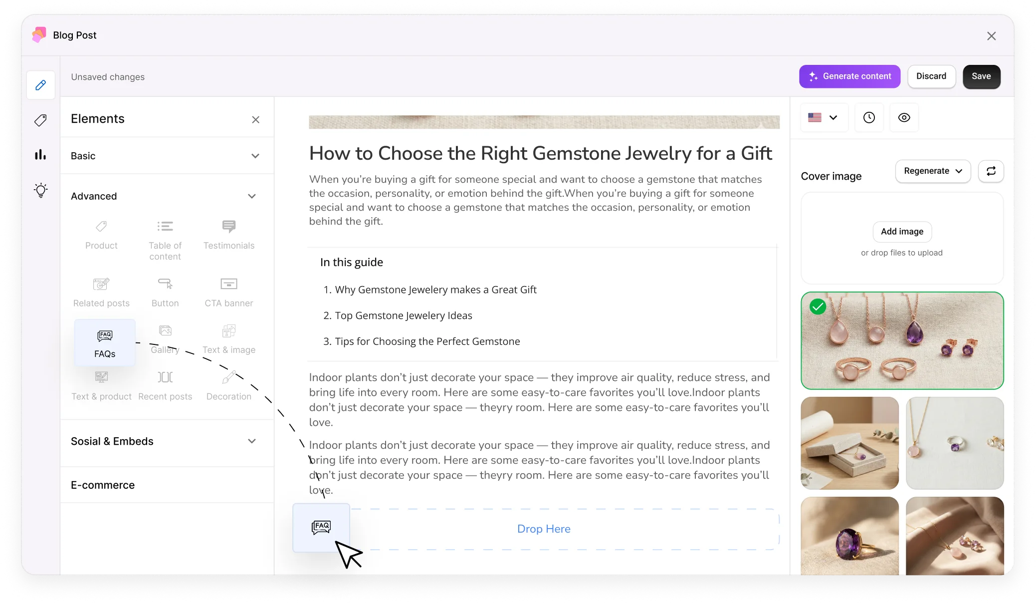 Use drag and drop content blocks and elements to engage and convert your visitors.