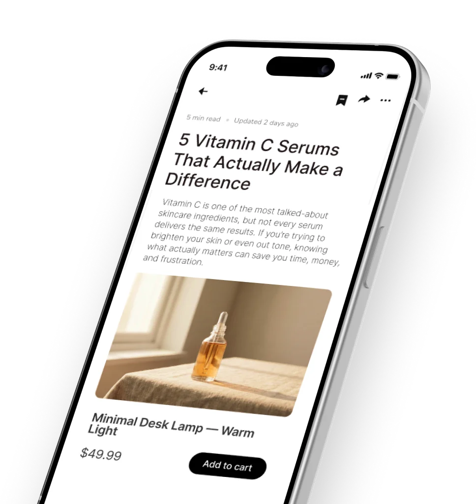 Increase organic traffic and sell via Shoppable Content in your Shopify store