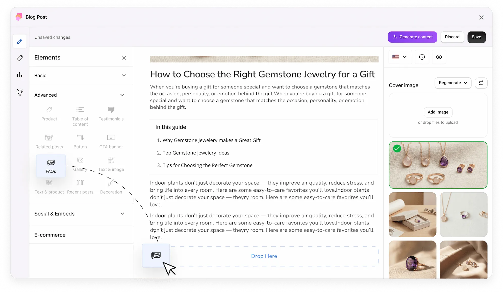 Create stunning blog posts. Make your blog posts shoppable with drag & drop builder