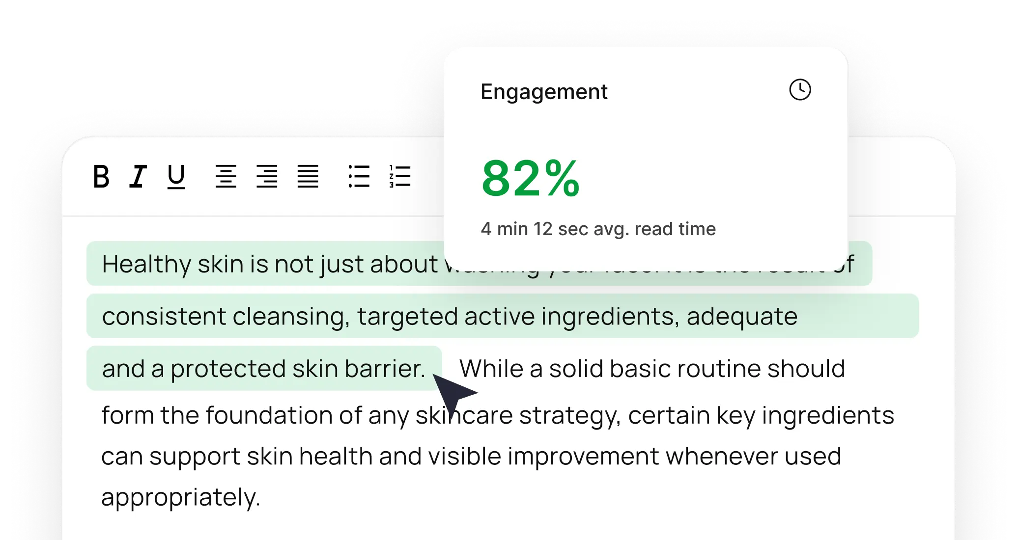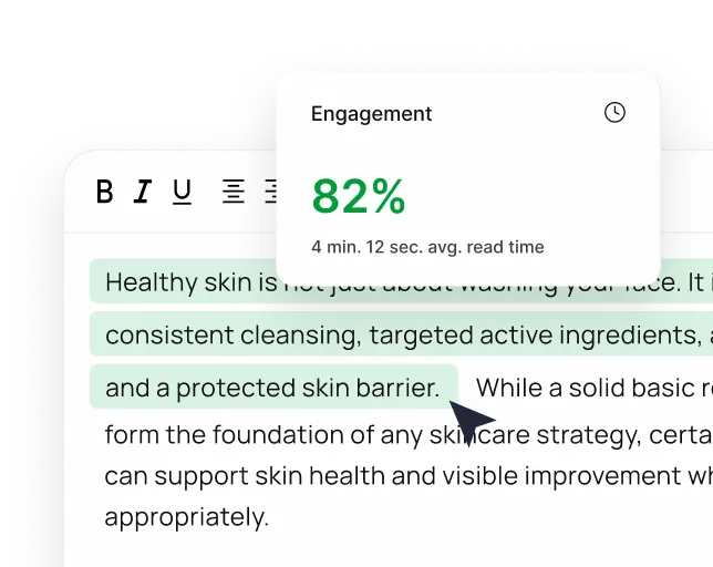See how readers interact with your content through heatmaps and check the engagement rate for each paragraph.