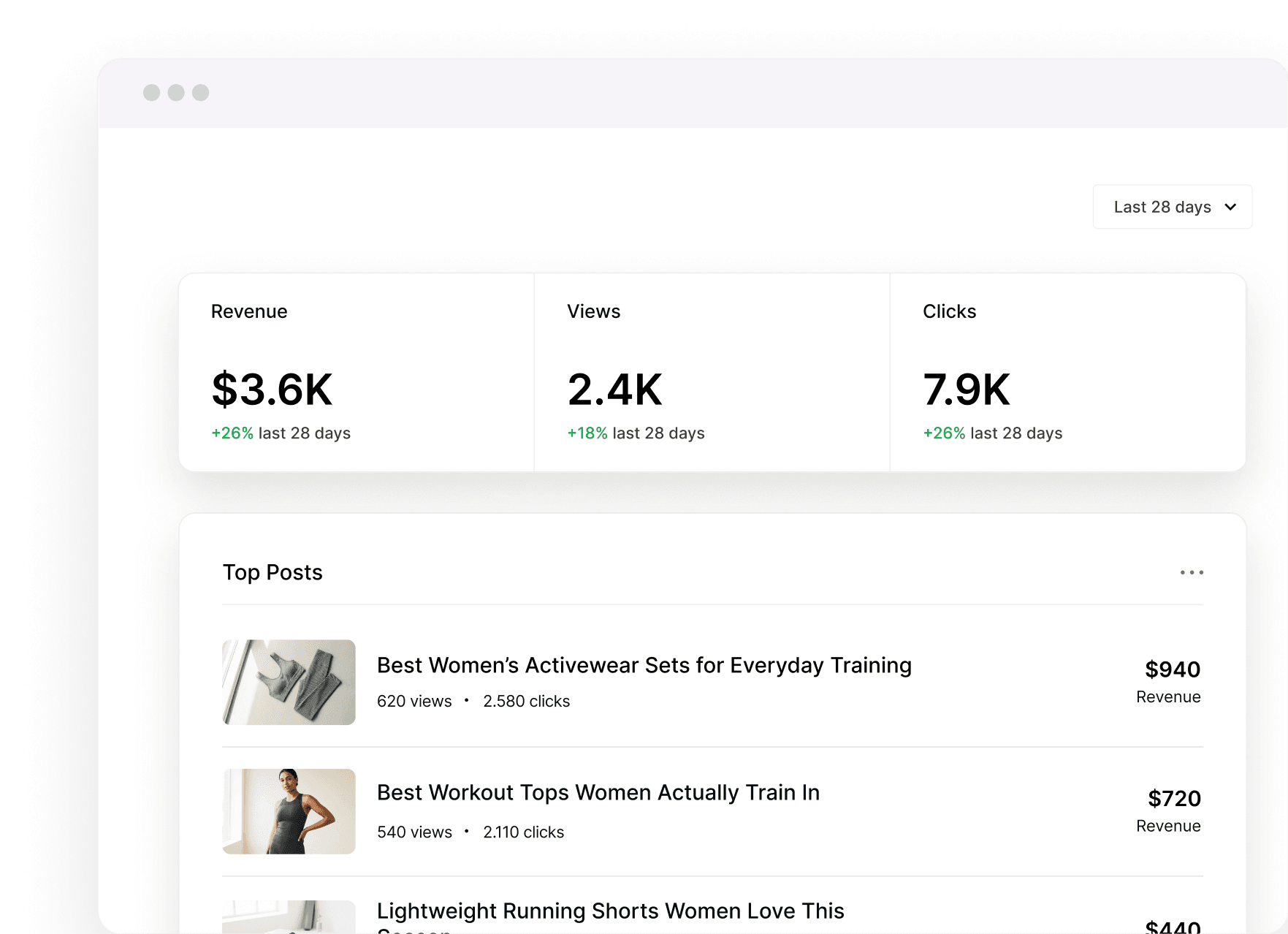 Track content impact from views → clicks → revenue — per post.\
